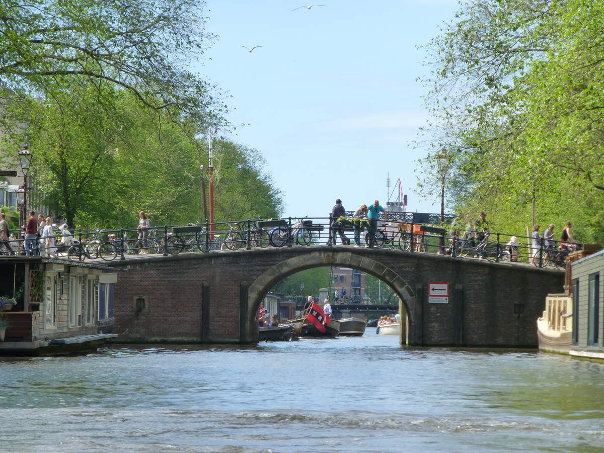 Nous sommes directement marqués par le nombre important de vélos qui circulent dans cette ville. Il va falloir rester très vigilant durant ce séjour car les vélos sont prioritaires et les gens ne ralentissent pas lorsqu’ils pédalent. Nous passons donc à côtés des musées et du logo « I amsterdam » et nous nous retrouvons de l’autre côté du Rijksmuseum. Nous traversons le Museumbrug et découvrons l’un des quartiers touristiques de la ville. Après une pause repas d’une heure, nous reprenons la visite guidée vers le centre historique.