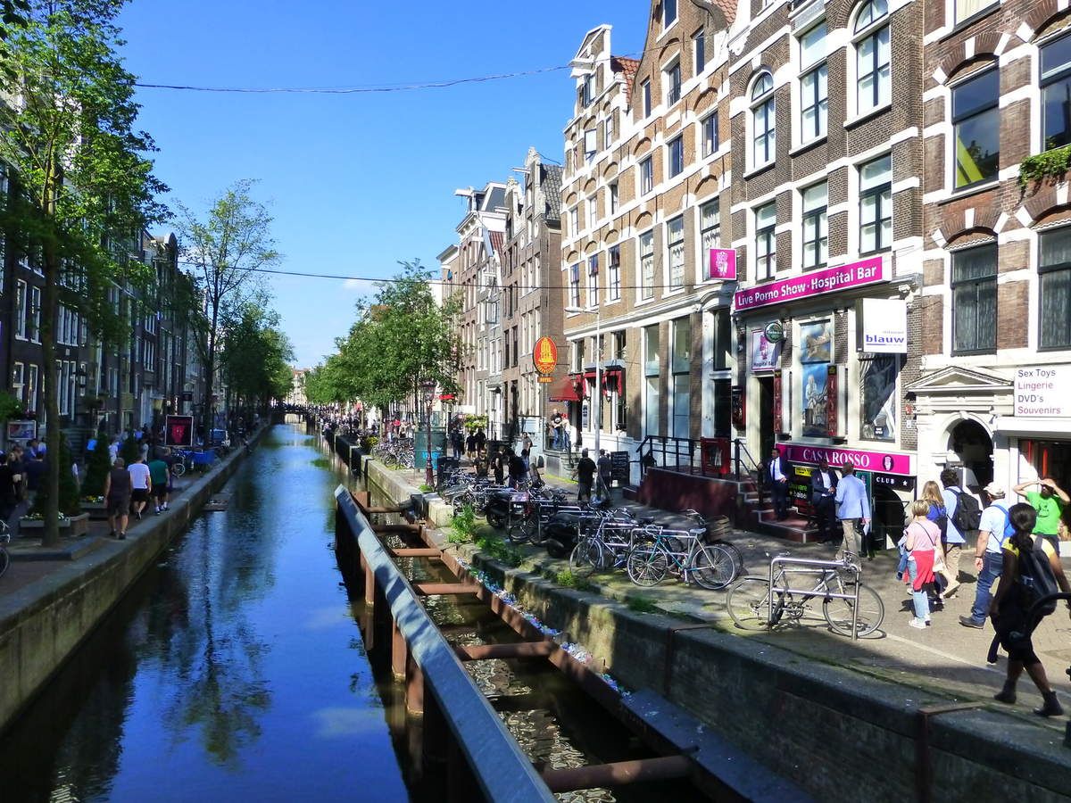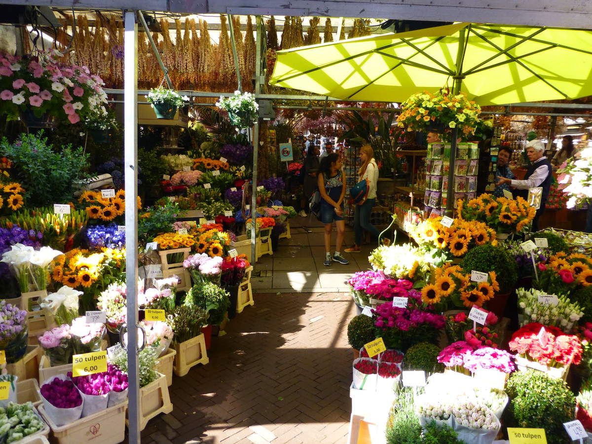 Après la croisière, nous reprenons la visite guidée et partons en direction du marché aux fleurs (Bloemenmarkt) puis la place de Dam, nous voyons des boutiques de fromages et terminons la visite par le quartier rouge De Wallen, avec ses filles en vitrines.